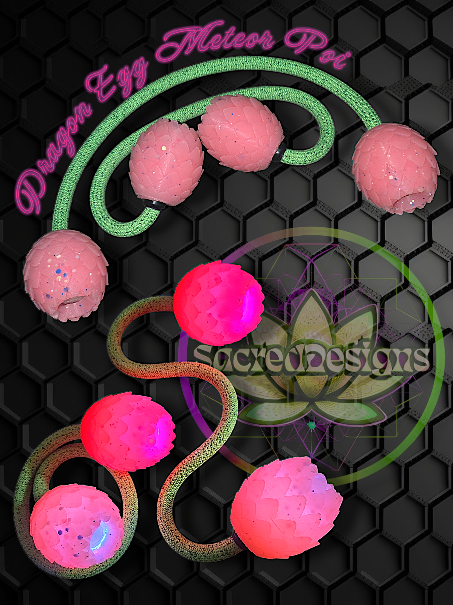 Learn MoreOur Lotus poi and new Dragon Egg staves are designed from scratch. We pour the tough and durable, liquid Dragon skin silicone into 3d printed molds, add different colors, glow filaments, and sparkles to create unique, one of a kind pours each and every time. Each prop is made completely by hand with time and intention.