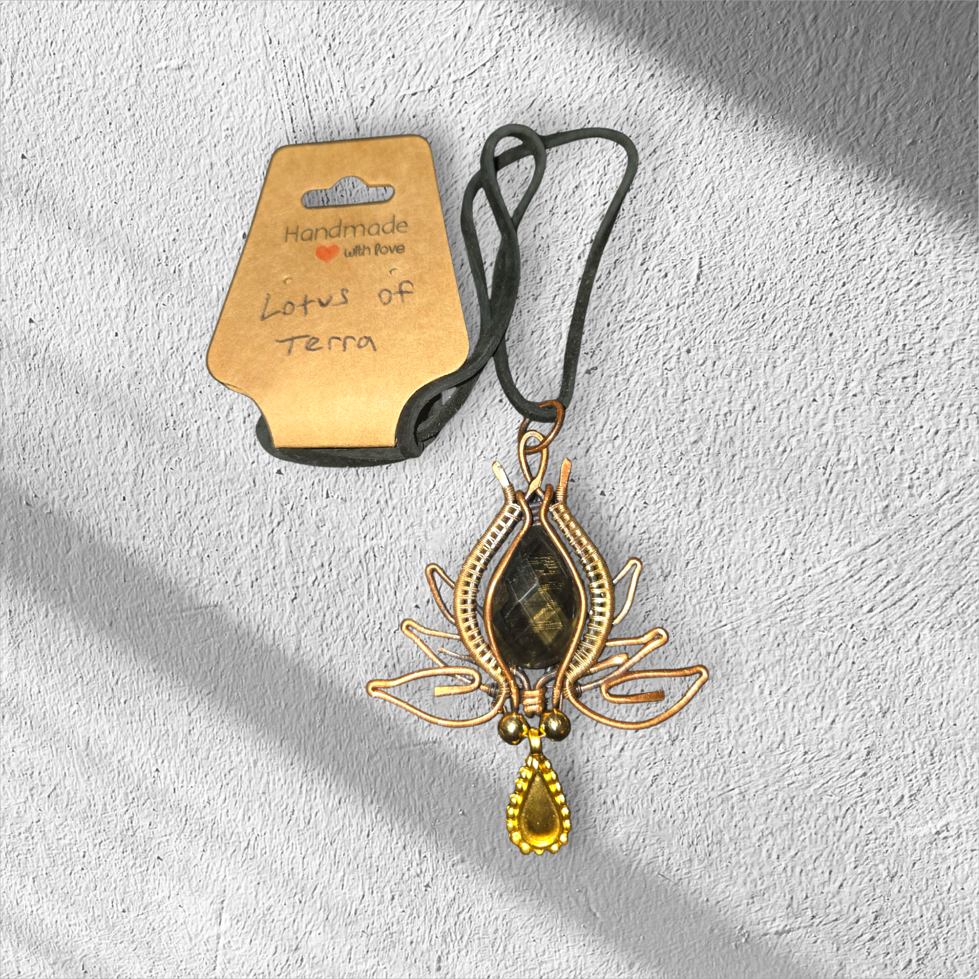 Featured here are the Lotus of Atlantis and Lotus of Terra — two exclusive pieces designed in the spirit of ancient symbolism and natural beauty. With delicate copper wirework, layered lotus motifs, and vibrant stones that catch the light, every pendant carries its own energy, character, and story.