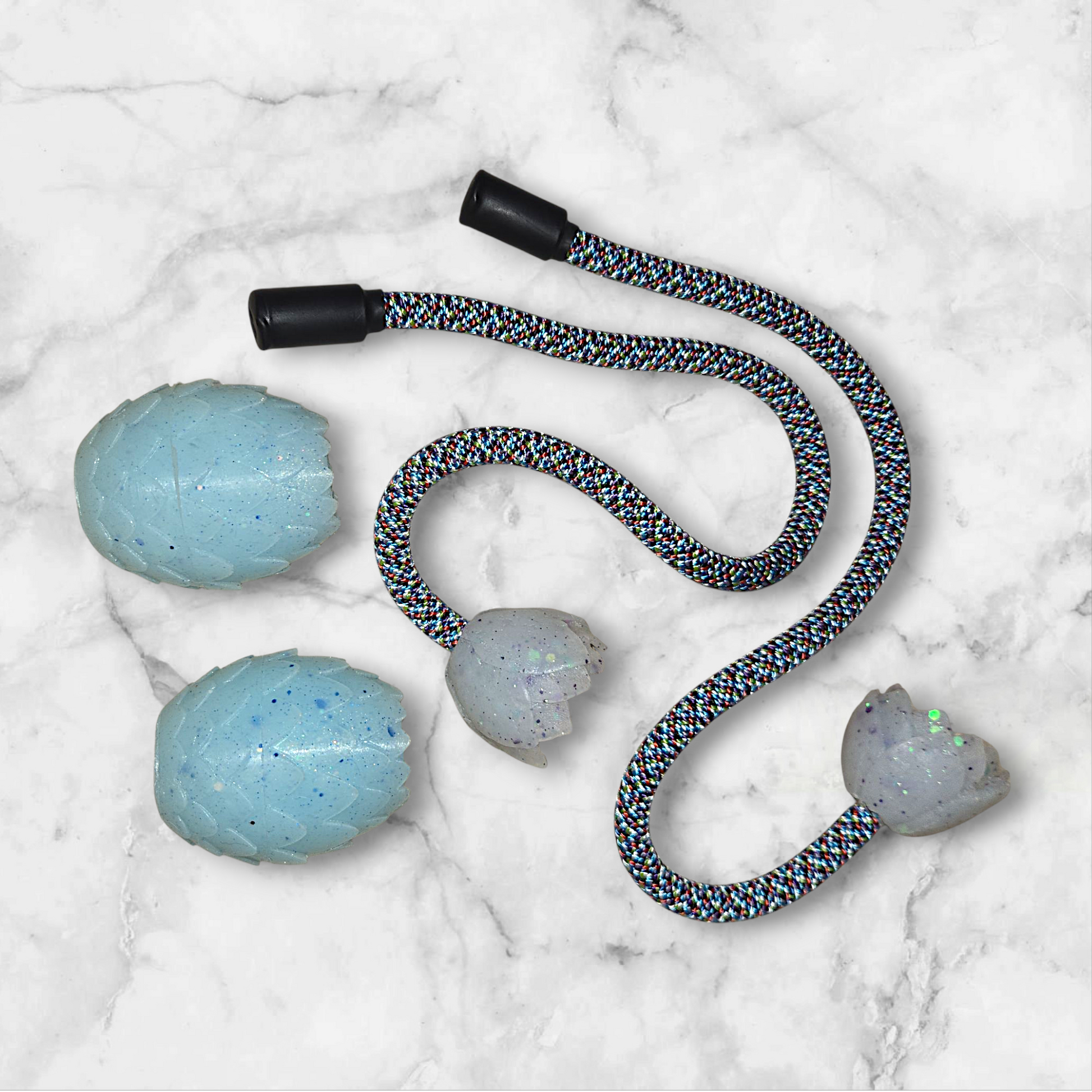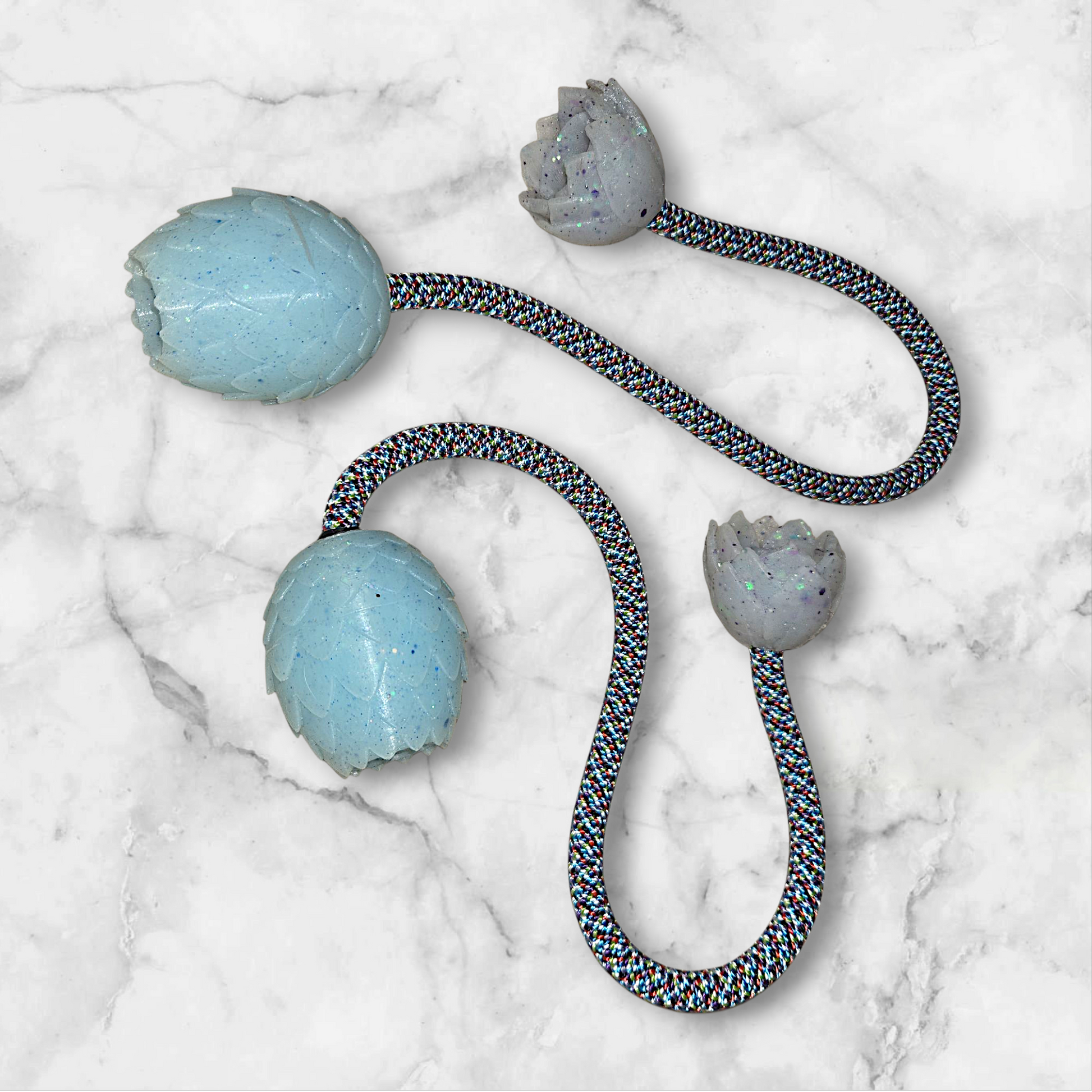 Each set of our Dragon Egg Lotus Poi is a handcrafted masterpiece—truly one of one. Featuring the dazzling texture of our signature Dragon Egg collection and paired with our traditional, hand-poured Lotus handles, these poi are designed for both beauty and high performance.