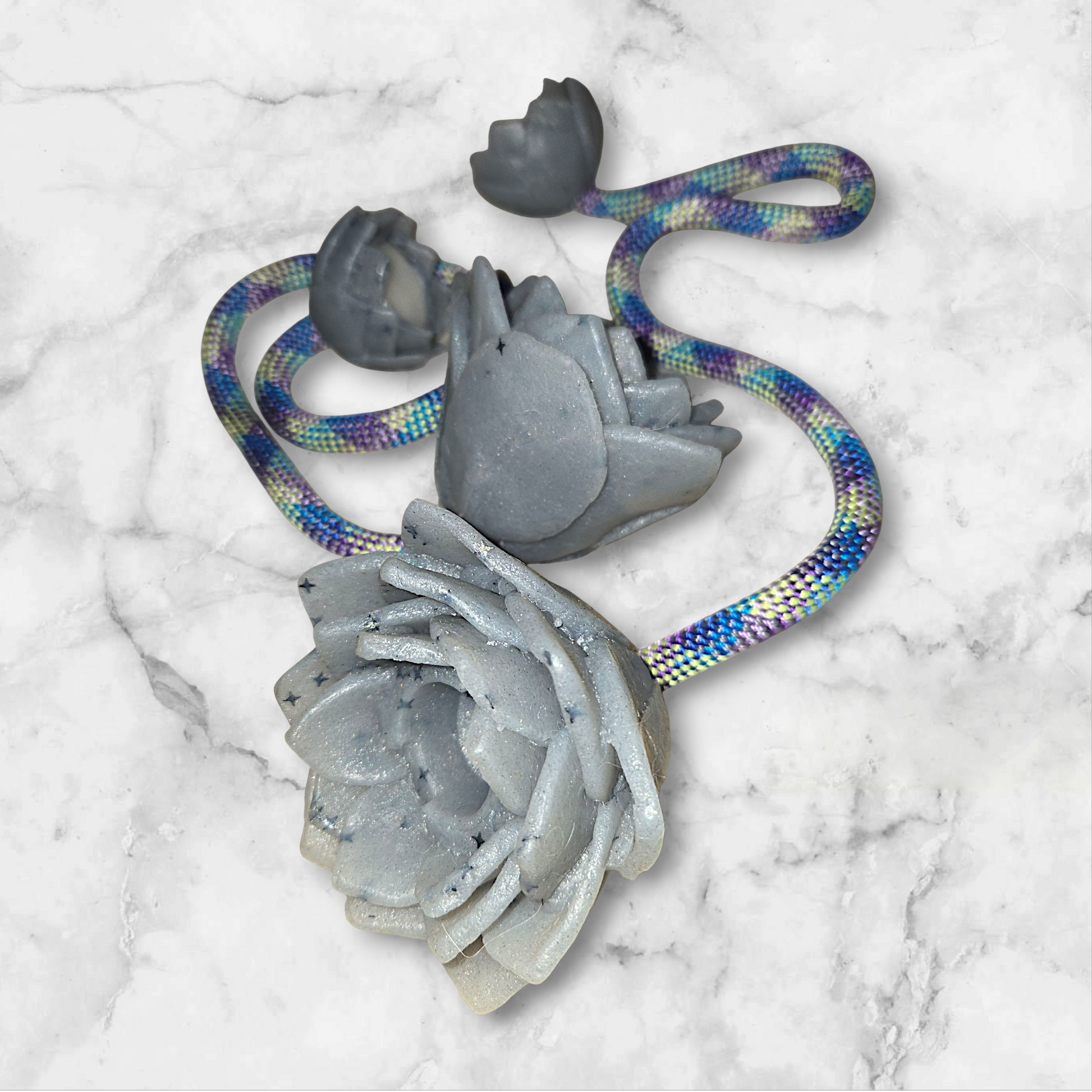 ~Details: Greyscale is a grey lotus set with black star sparkles and a unique purple and yellow dynamic tether