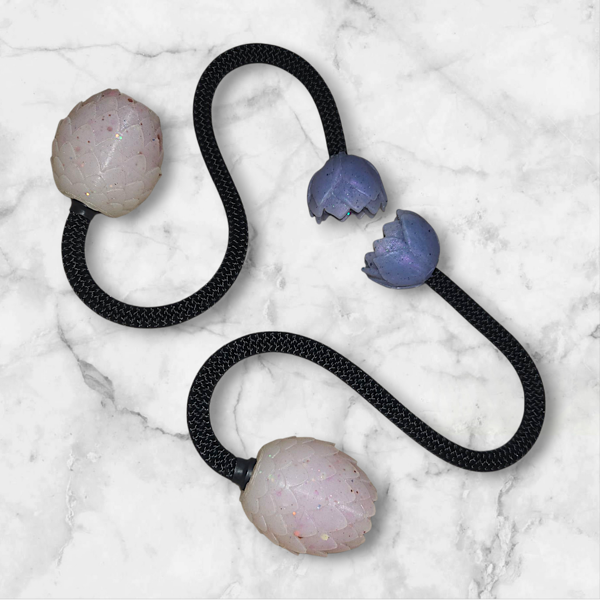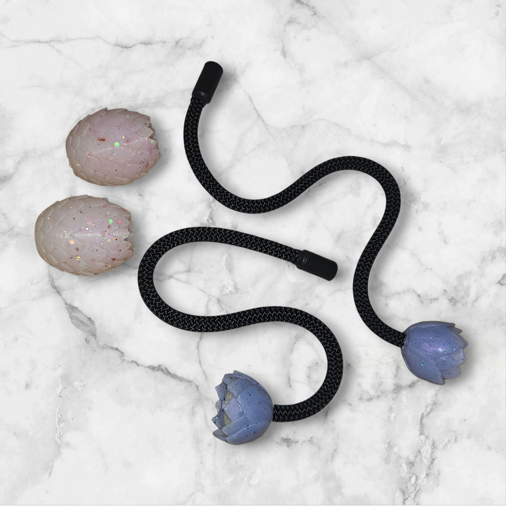 Each set of our Dragon Egg Lotus Poi is a handcrafted masterpiece—truly one of one. Featuring the dazzling texture of our signature Dragon Egg collection and paired with our traditional, hand-poured Lotus handles, these poi are designed for both beauty and high performance.