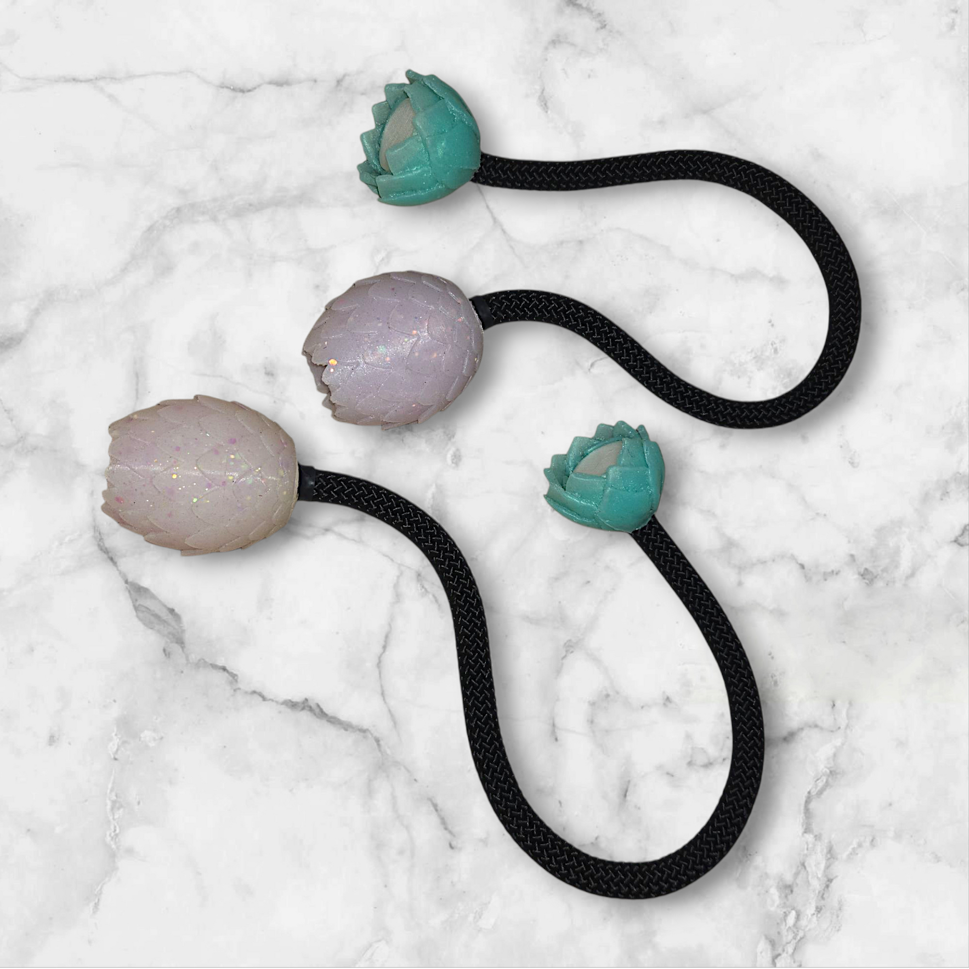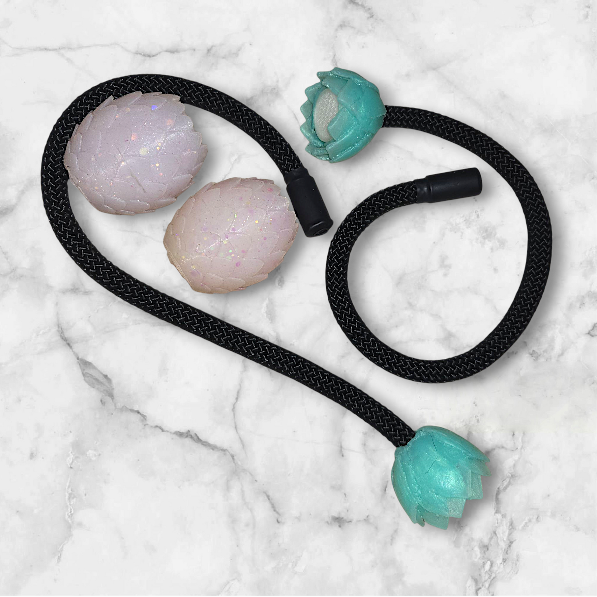 Each set of our Dragon Egg Lotus Poi is a handcrafted masterpiece—truly one of one. Featuring the dazzling texture of our signature Dragon Egg collection and paired with our traditional, hand-poured Lotus handles, these poi are designed for both beauty and high performance.